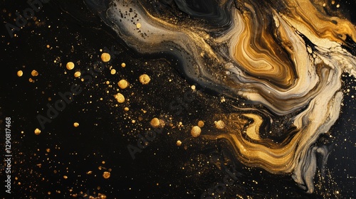 Fototapeta premium Abstract black and gold marble texture with swirling patterns, luxury design...