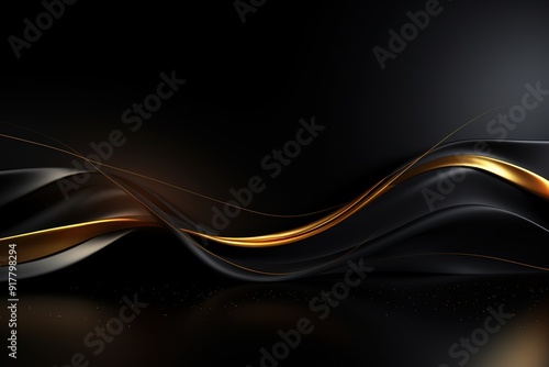 © hfwstudio, Naklejka premium Abstract black and gold wave background with copy space.