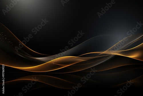 © hfwstudio, Naklejka premium Abstract black and gold wavy background.