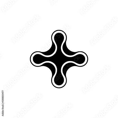 Fototapeta premium Abstract Black and Silver Cross Icon with Drop Shadow on White Background