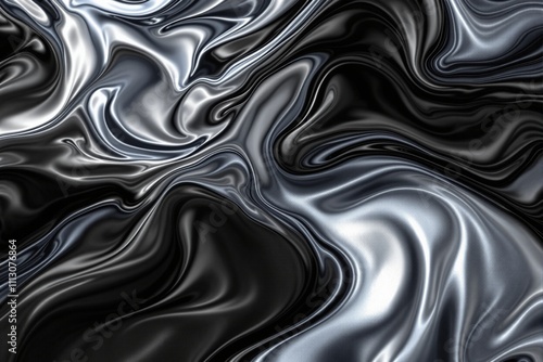 Obraz premium Abstract Black and Silver Fluid Texture with Swirling Patterns