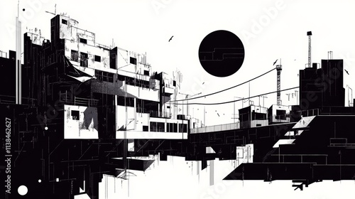 © B8stock, Obraz premium Abstract Black and White Cityscape