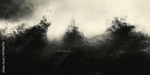 Fototapeta premium Abstract black and white cloudscape with textured, billowing clouds.