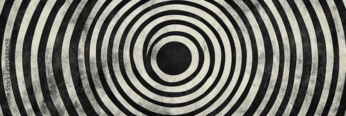 © yanlong, Obraz premium Abstract Black and White Concentric Circle Pattern on a Grungy Background, Suited for Retro, Vintage, or Visual Illusion Design Themes