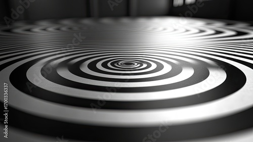 Fototapeta premium Abstract black and white concentric circles pattern, hypnotic illusion.