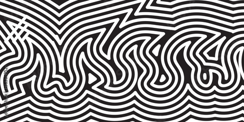 © roky, Naklejka premium Abstract Black and White Curved Line Design with Geometric Patterns