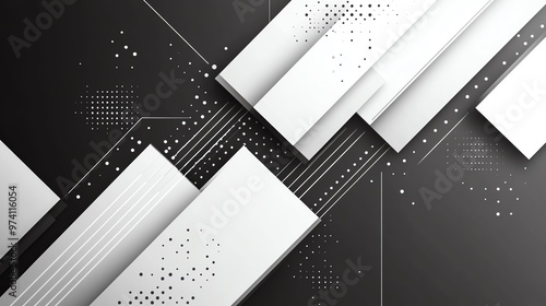 Obraz premium Abstract black and white geometric background with stripes and dots.