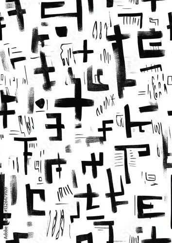 © Gro, Obraz premium Abstract Black and White Geometric Pattern on White Background