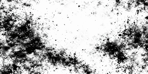 Obraz premium Abstract black and white grunge background featuring a dark ink splash pattern with paint splatter texture and a dirty liquid stain design