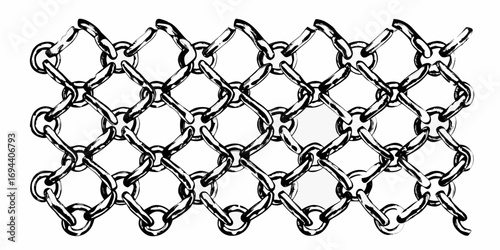 Fototapeta premium Abstract black and white illustration of a woven chain link fence pattern