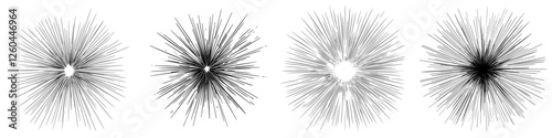 © Антон Сальников, Fototapeta premium Abstract black and white illustrations of starbursts radiating from a central point at various intensities