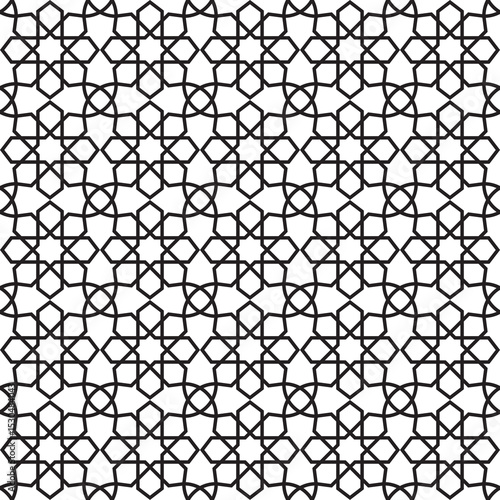 © OrangRobot, Fototapeta premium Abstract black and white Islamic pattern, geometric pattern. Modern vector illustration for greeting card, cover, flyer, wallpaper. Abstract texture ornament design, repeating tile
