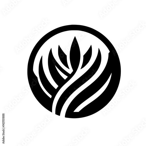 Obraz premium Abstract Black and White Logo of Organic Shape in Circle