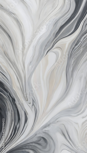© Janos, Obraz premium Abstract black and white marble texture with fluid, wavy patterns.