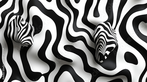 Obraz premium Abstract black and white pattern with two 3D objects.