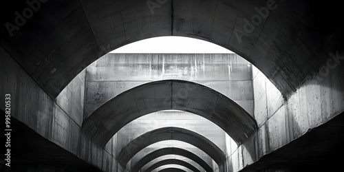 © Neural9 Project, Fototapeta premium Abstract Black and White Photograph of Concrete Arches Leading to Light