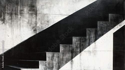 Fototapeta premium Abstract Black and White Staircase Design with Geometric Shapes