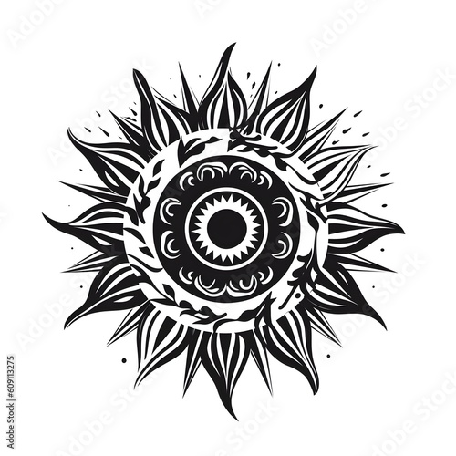 Naklejka premium Abstract black and white sun illustration, AI generated