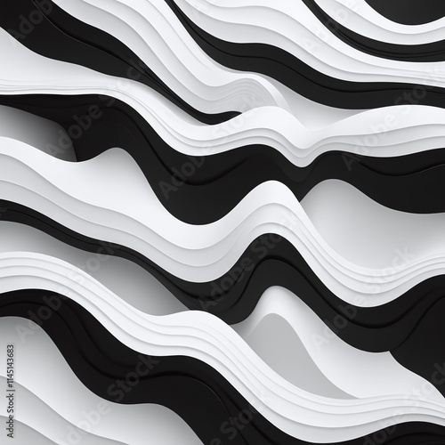 Fototapeta premium Abstract black and white wavy lines background creating a modern minimalist...