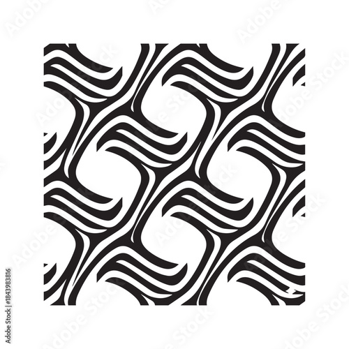Obraz premium Abstract black and white wavy pattern background with curved lines and monochrome stripes in a modern retro style