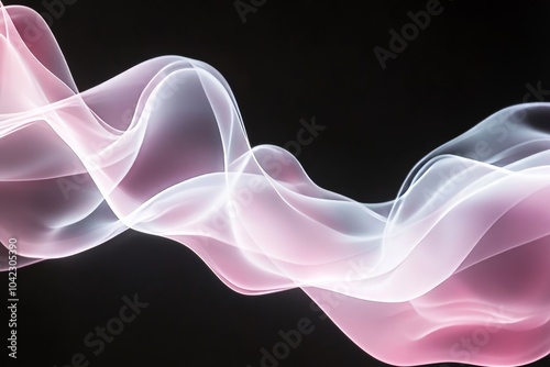 Naklejka premium Abstract black background. Featuring a cascade of soft pink and white light waves. Showcasing a gentle and elegant visual effect. Ideal for artistic or serene themes