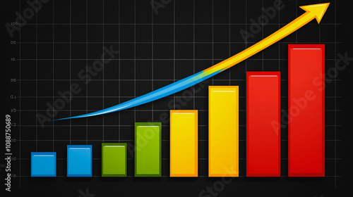 Fototapeta premium Abstract black background with 3D Colorful charts and graphs with statistics to innovative analyze business potential and forecast future development of companies growth.