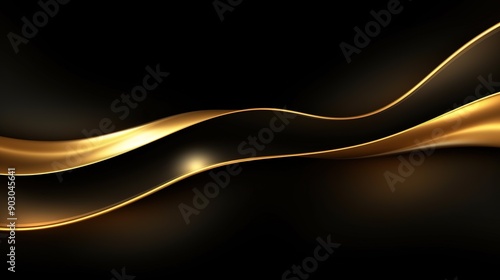 Fototapeta premium Abstract black background with golden wavy lines.