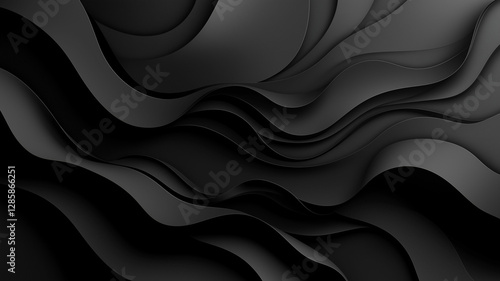 Obraz premium Abstract black background with wavy lines and shadows for presentation...