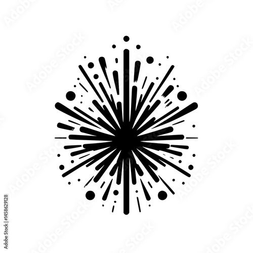 Obraz premium Abstract Black Burst on White Background, Explosive Design Element
