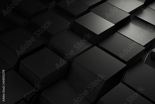 Fototapeta premium Abstract black cubes background, 3d render illustration, square shape. Abstract hexagonal geometric ultra wide background. Structure of lots of hexagons of carbon fiber , AI Generated