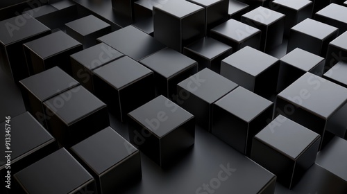 © hanafi 99d, Obraz premium Abstract Black Cubes 3D Render