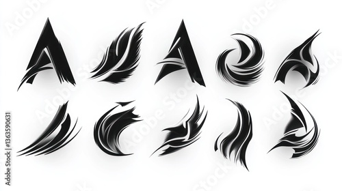 Fototapeta premium Abstract black designs; letter A variations; white background; logo concepts