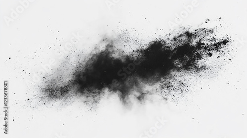 Fototapeta premium Abstract black dust cloud swirling in white background, creating a dramatic and artistic effect.