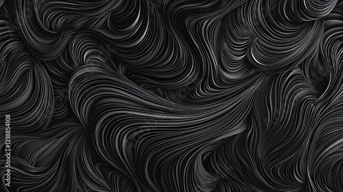 © Thanyaporn, Obraz premium Abstract Black Flowing Wave Patterns for Background Design Usage
