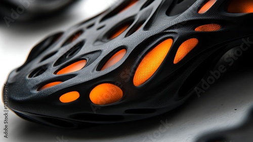 © Mugo, Obraz premium Abstract Black Footwear Design with Orange Accents