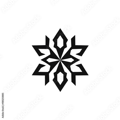 © Indri, Obraz premium Abstract black geometric snowflake design.