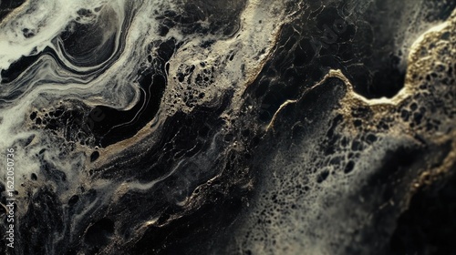 Fototapeta premium Abstract, black, gold, white, marble, fluid art, flowing design, background