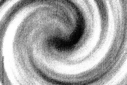 Obraz premium Abstract black halftone swirl texture with radial motion on transparent...