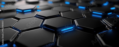 Obraz premium Abstract Black Hexagonal Pattern with Blue Glowing Lines