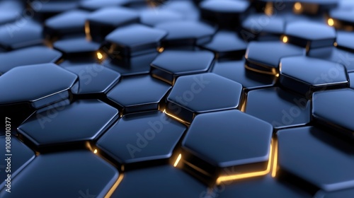 Obraz premium Abstract Black Hexagonal Pattern with Gold Accents