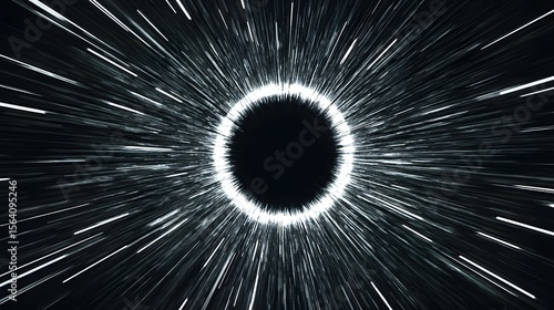 Obraz premium Abstract black hole illustration with bright streaks radiating outwards in space.