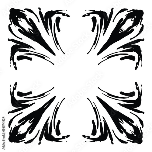 Obraz premium Abstract black ink splash design on white background with transparent elements