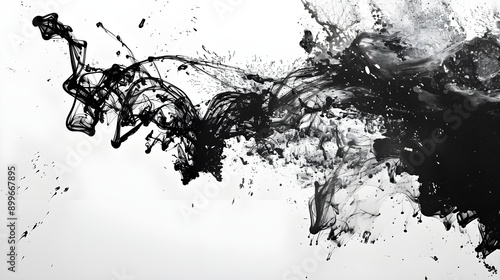 Fototapeta premium Abstract black ink splashes on a white background