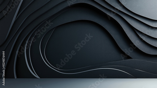 © Alfazet Chronicles, Obraz premium Abstract black layered background with overlapping waves creating a three-dimensional effect and elegant curves.