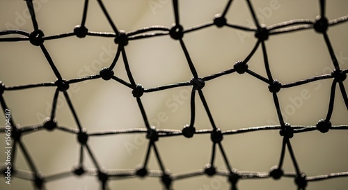 © Sepnengsih, Fototapeta premium Abstract Black Netting Close-Up with Knots and Textured Background