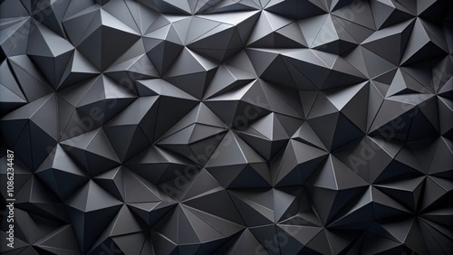 Obraz premium Abstract black polygonal surface background in rendering, geometric, digital, abstract, design, dark, polygon, shape