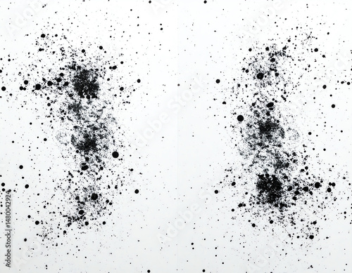 Obraz premium Abstract black splatters create a dynamic contrast against a white background, evoking a sense of movement and artistic expression