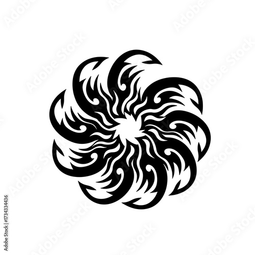 © kado, Obraz premium Abstract Black Tribal Mandala Ornamental design with floral elements on white background.