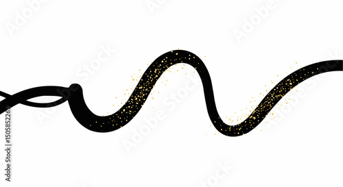 © olga, Obraz premium Abstract black wavy line with glitter on white background
