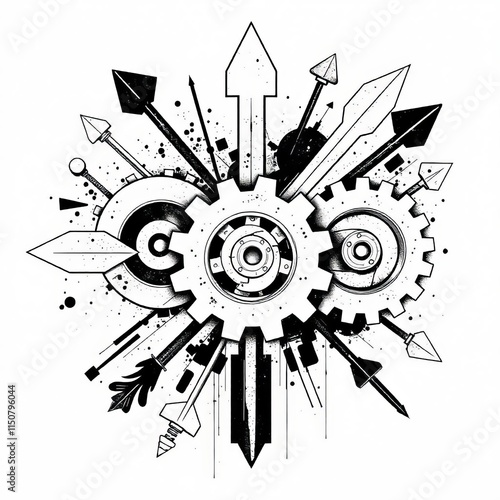 Fototapeta premium Abstract Black White Gear Arrows and Splashes Design
